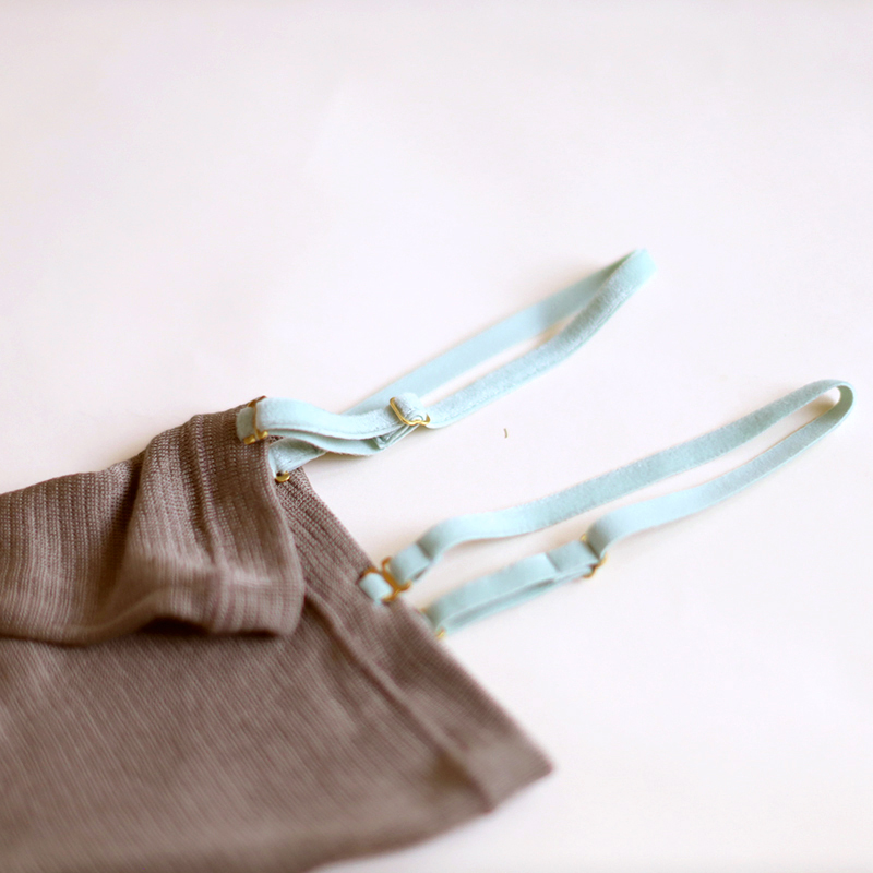 ストラップを外して二重にしてはらまきのように使ったり、肌に直接触れたくないブラジャーのカバーにも。 ストラップをオンオフすることでマルチに使えます。
