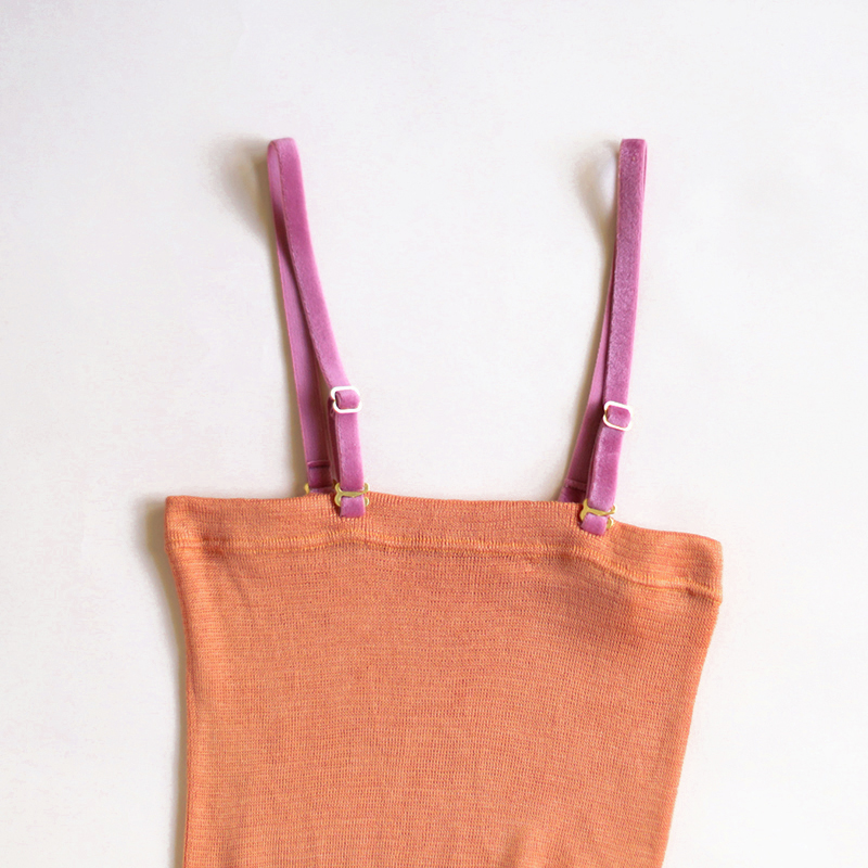 ストラップを外してはらまきにしたり、化繊のブラジャーの下に着用してお肌を守ったりと、シンプルな構造だからこそ様々なシーンでご使用いただけます。