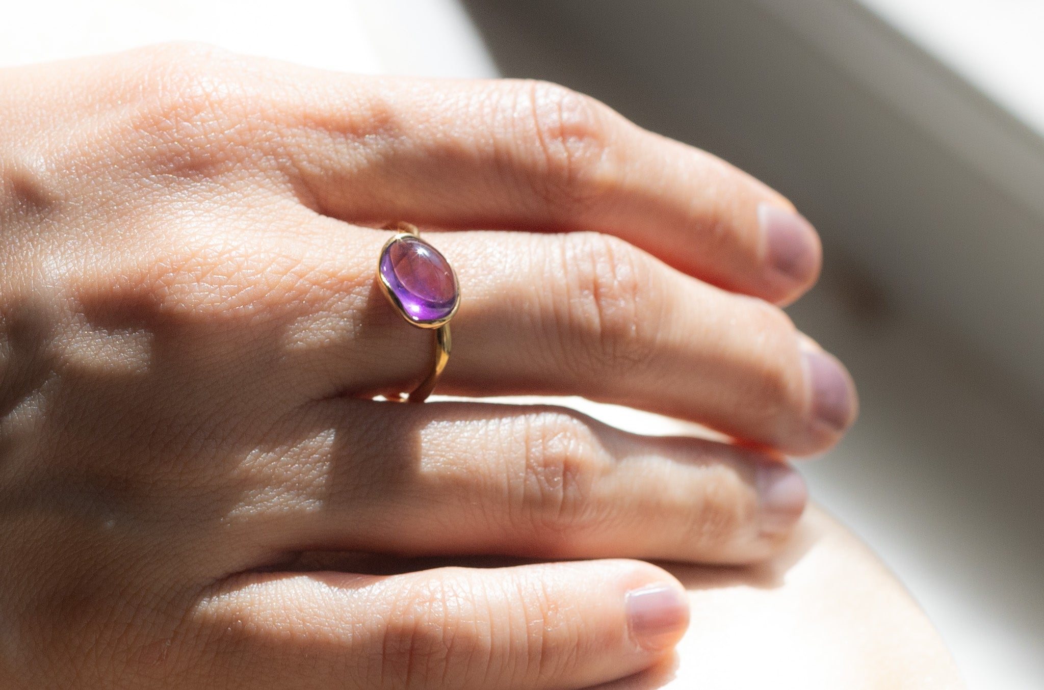 石の上辺に持ってくることで、指が長く見えるバランスをデザインしました。